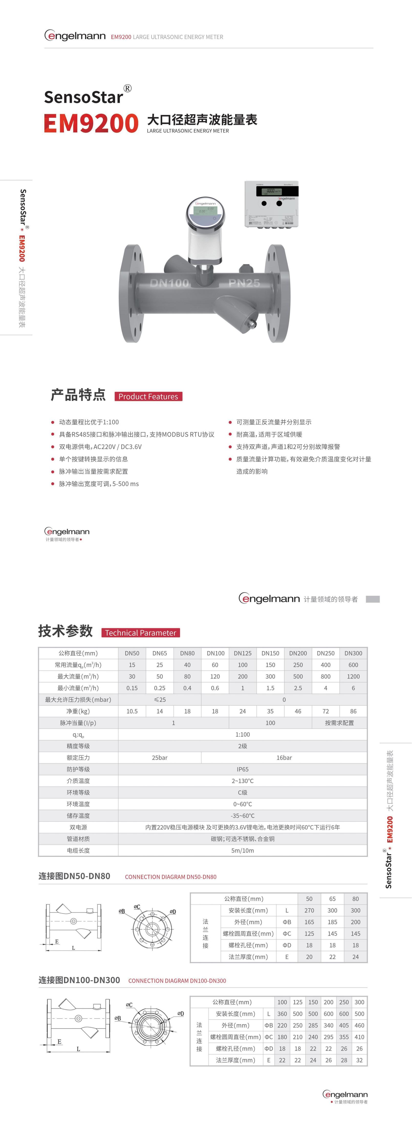 產品描述:動態量程比優於1:100;RS485接口和脈衝輸出接口,可選MODBUS RTU協議;雙電源供電,220V AC / 3.6V DC;—個按鍵轉換顯示的信息;脈衝輸岀當量可調;脈衝輸出寬度可調...