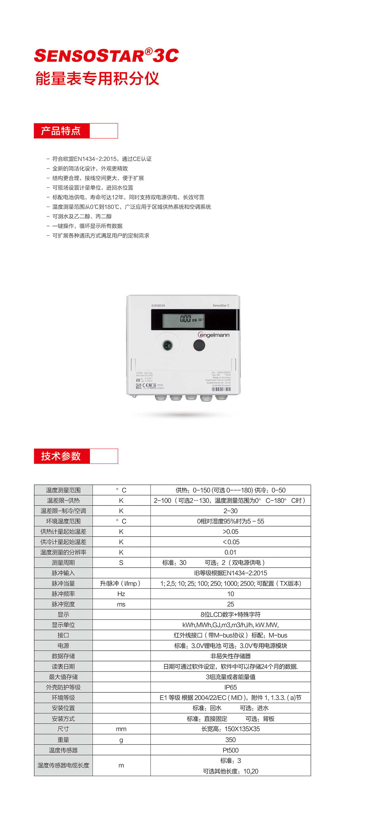 產品描述:符合歐盟EN1434-2:2015,通過CE認證;全新的簡潔化設計,外觀更精致;結構更合理,接線空間更大,便於擴展;標配電池供電,壽命可達12年,同時支持雙電源供電,長效可靠...