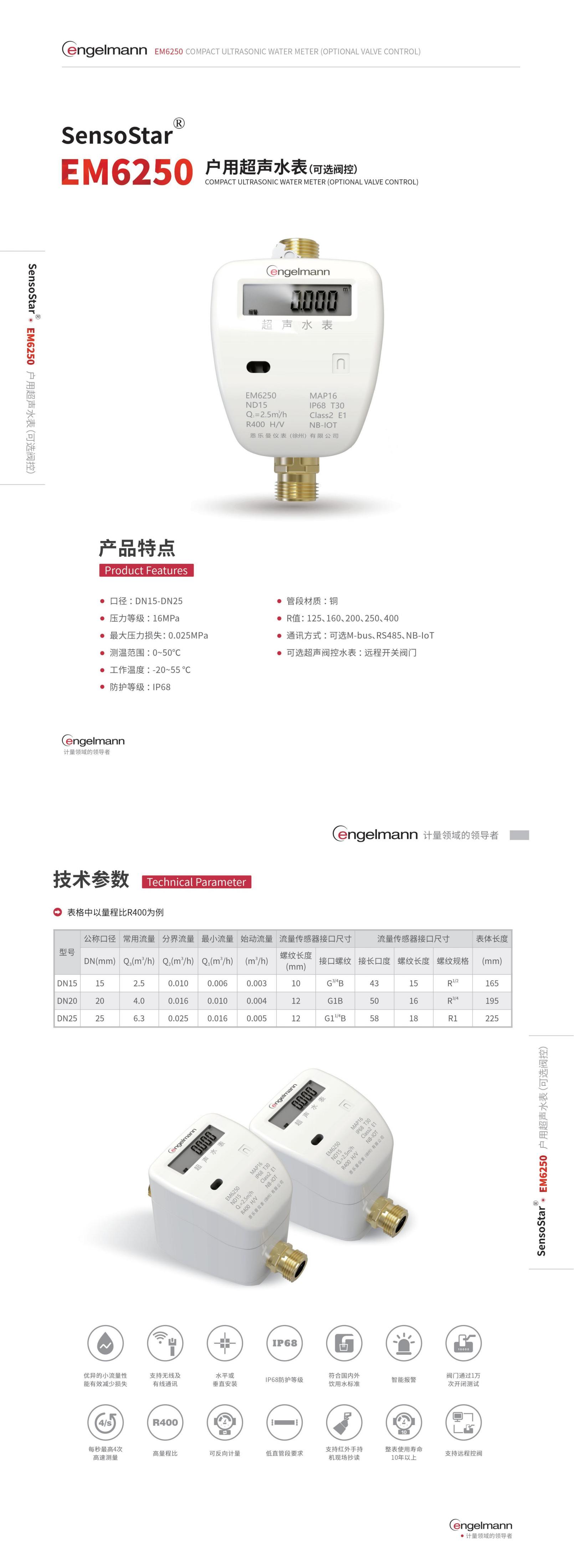 產品描述:優異的小流量性,能有效減少損失;支持無線及有線通訊;水平或垂直安裝; IP68防護等級;符合國內外飲用水標準...