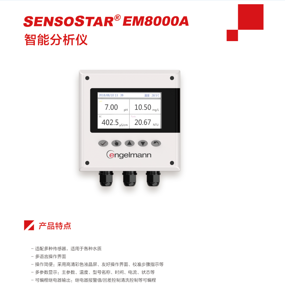 產品描述:適配多種傳感器,適用於各種水質;多語言操作界麵;操作簡便:采用高清彩色液晶屏、友好操作界麵、校準步驟指示.........