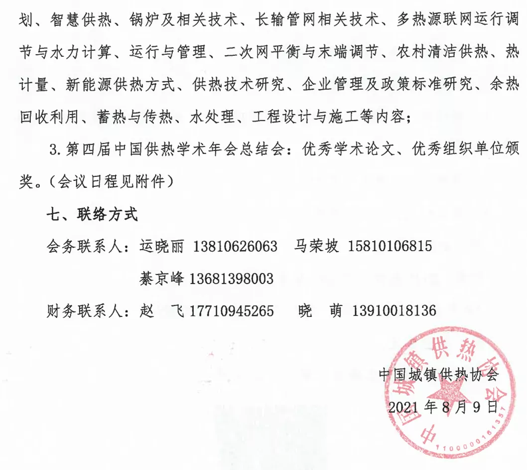 2.第四屆中國供熱學術年會分論壇:包括碳達峰碳中和與城鎮供熱規劃、智慧供熱、鍋爐及相關技術、長輸管網相關技術、多熱源聯網運行調節與水力計算、運行與管理、二次網平衡與末端調節、農村清潔供熱、熱計量、新能源供熱方式、供熱技術研究、企業管理及政策標準研究、餘熱回收利用、蓄熱與傳熱、水處理、工程設計與施工等內容;